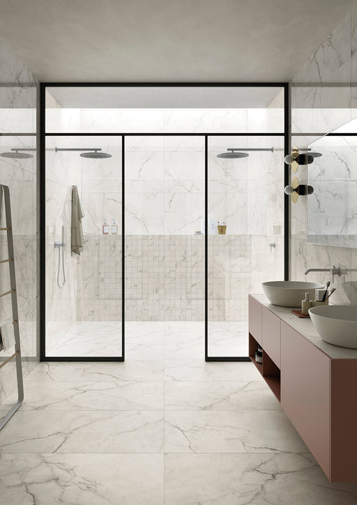 Carrara Select 2.0 combines the beauty of mined Carrara marble from Italy with American-made, high-tech porcelain. The modern simplicity of the fin...