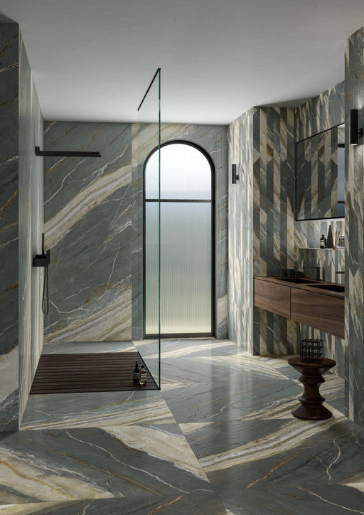 La Marmoteca distills the elegance of marble into a single, expressive statement. Pearl Deluxe reveals a luminous ivory base traced with fluid gray...