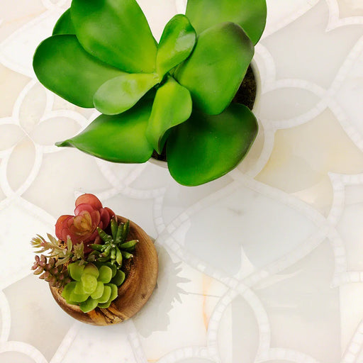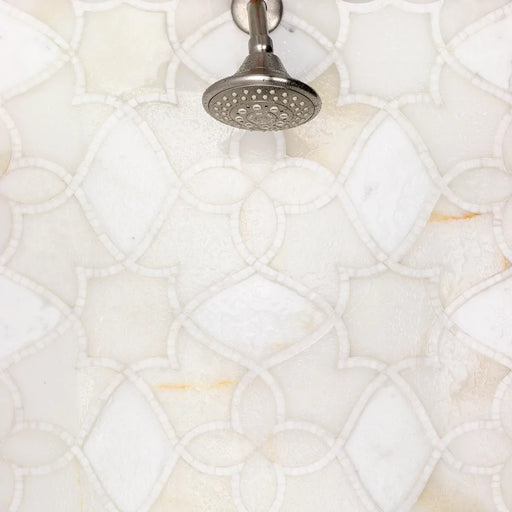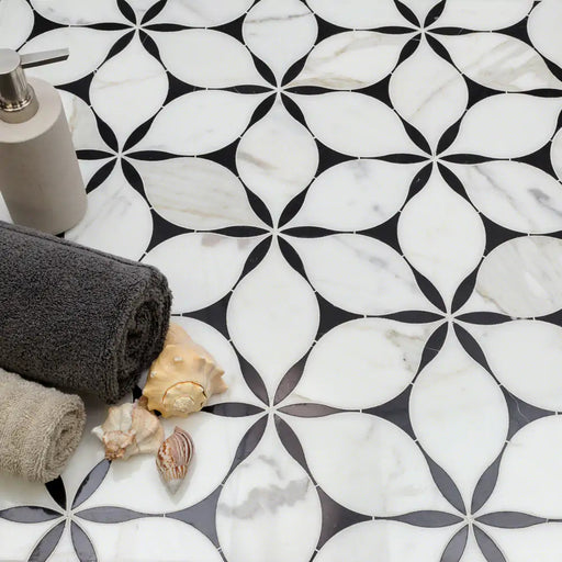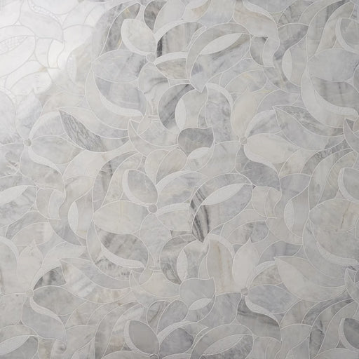 The Kendall collection showcases elegant waterjet marble mosaics inspired by the graceful forms of the Canna flower. The intricate floral pattern b...