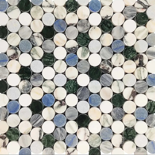 The Reseau collection features a chic penny round mosaic with a harmonious blend of colors. Light gray tiles create a subtle, sophisticated backdro...