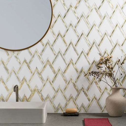 Our Wunder 2.0 Collection redefines the possibilities of marble tiles as a luxurious yet energetic design element. With a triangular waterjet patte...
