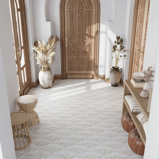 Soft arcs of natural marble come together in a flowing pattern that brings gentle movement to walls and floors. The subtle shifts in tone add depth...