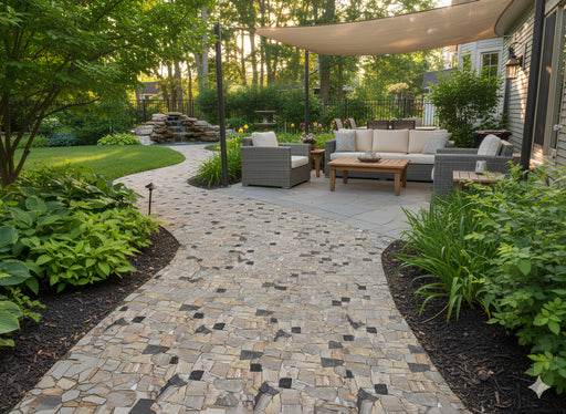 Natural pebble fragments form a mosaic that feels unedited and true to its origin, pieces settling together into a pattern that is organic without ...