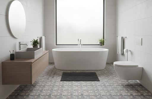 Coordinating mosaics in contemporary patterns and color blends for an added touch of luxury on walls or floors. Classically beautiful in both resid...