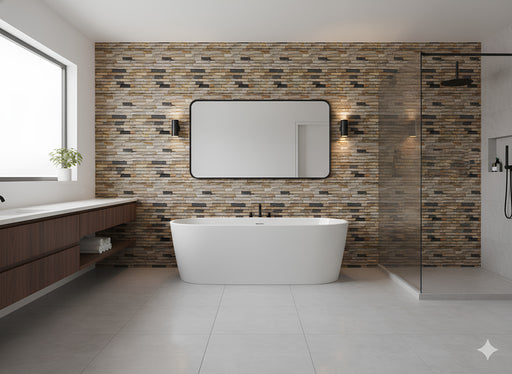 Experience your living space transformed with the Corrugated Scape mosaic collection. Crafted from a combination of glass mixed with stone, slate, ...