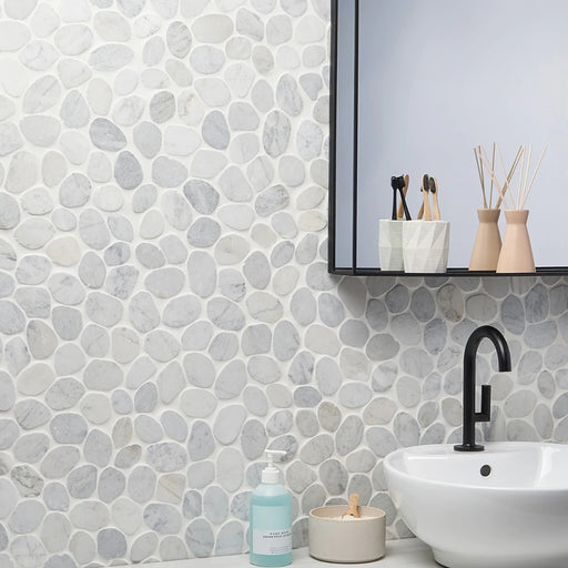 The Carrara White Tumbled collection offers a classic and timeless style, crafted from white Carrara marble with a tumbled finish that provides a s...
