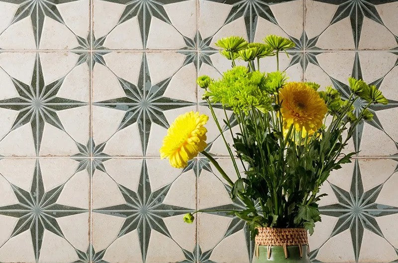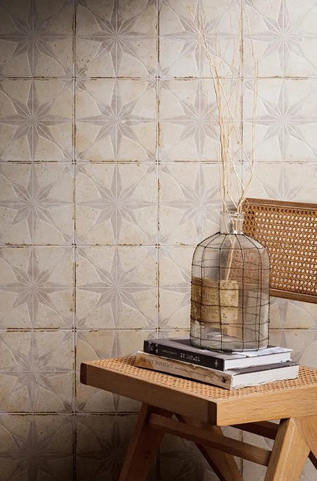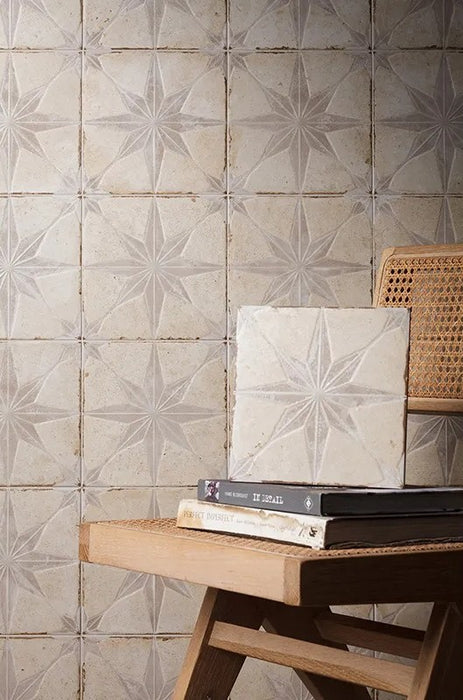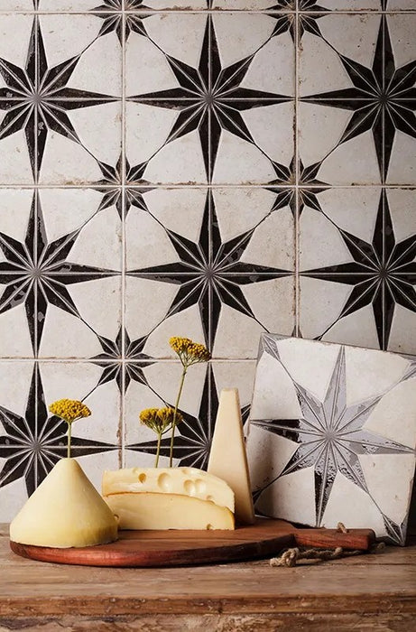 Discover the Catalina Starlight Collection—an evolution of the beloved Star, now reimagined in durable porcelain in a 9x9 in format. This collection blends vintage charm with artisanal flair. Featuring subtle low relief and enhanced with Layer Tech technology, the tiles shimmer with whimsical sparkles in tones of black, white, sage, and blue. Suitable for both interior and exterior applications—on floors or walls—Catalina Starlight is perfect for adding character, texture, and a unique sense of style to any space.