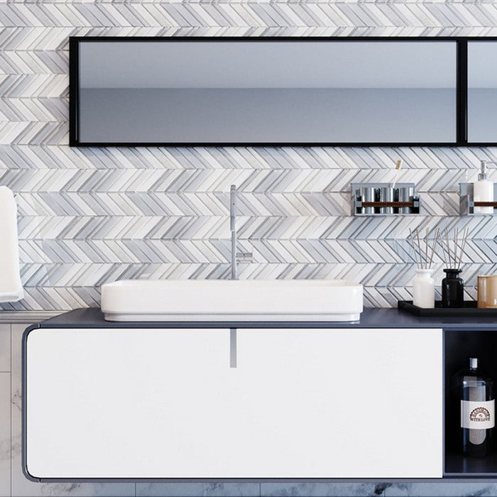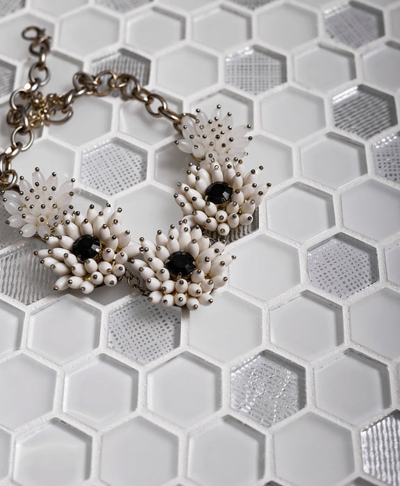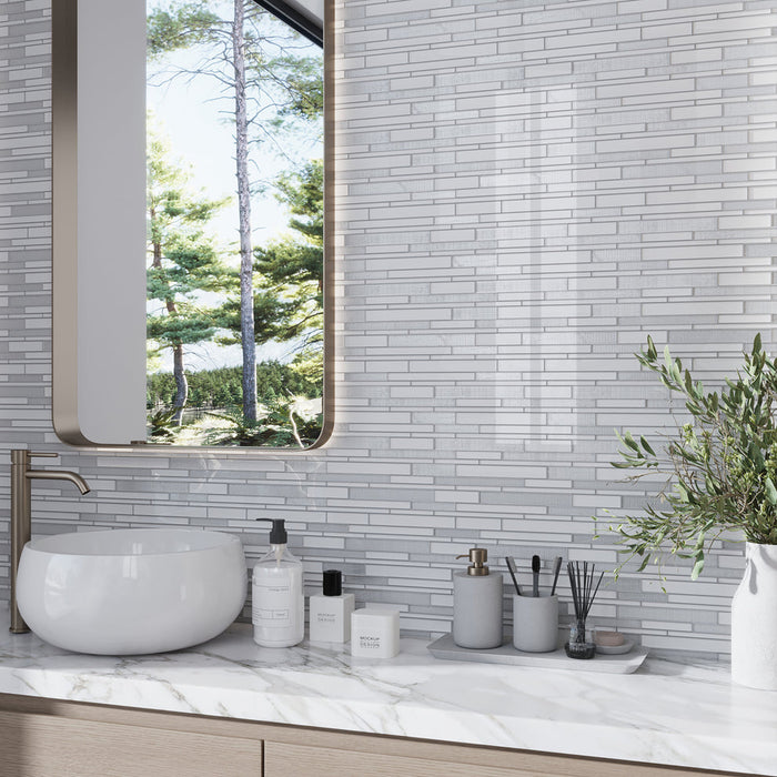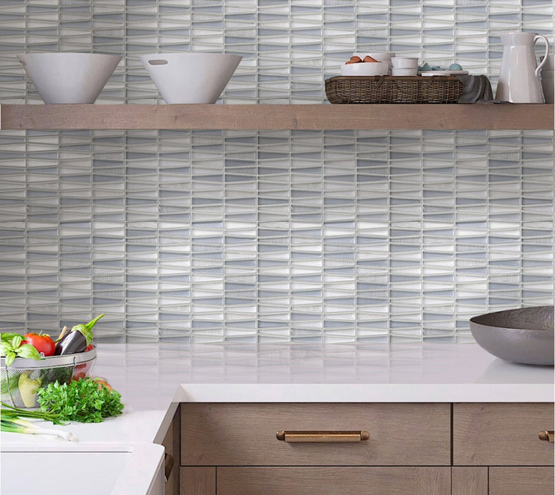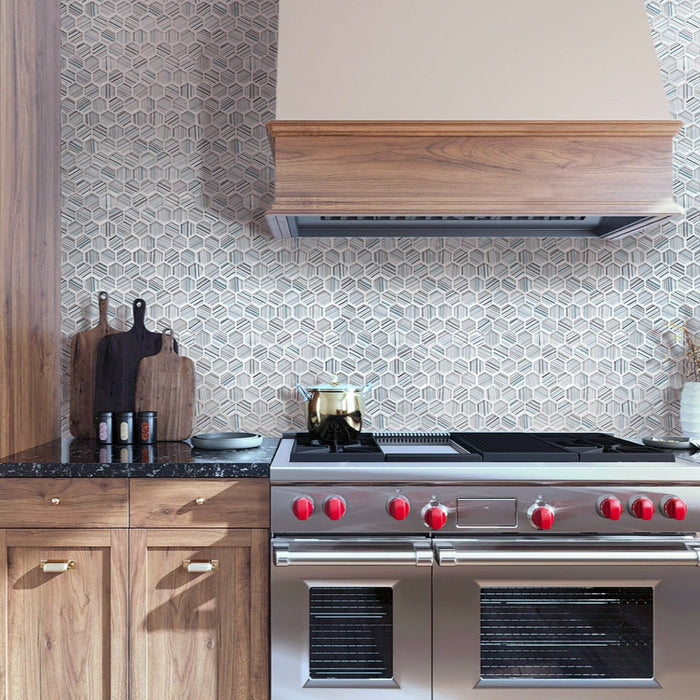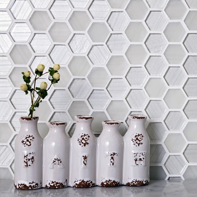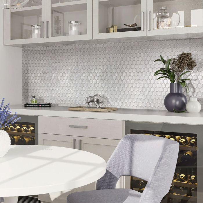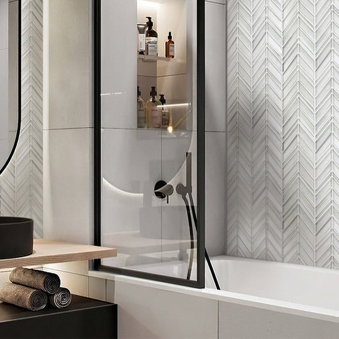 Why choose between bold design and timeless elegance when you can have both? The Iceland Shapes Collection blends modern glass surfaces with classic geometric patterns to create a versatile and eye-catching series of mosaic tiles. The sleek, iridescent glass finish reflects light beautifully, adding a luminous, airy quality to any space while enhancing depth and dimension.