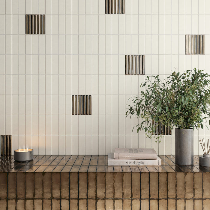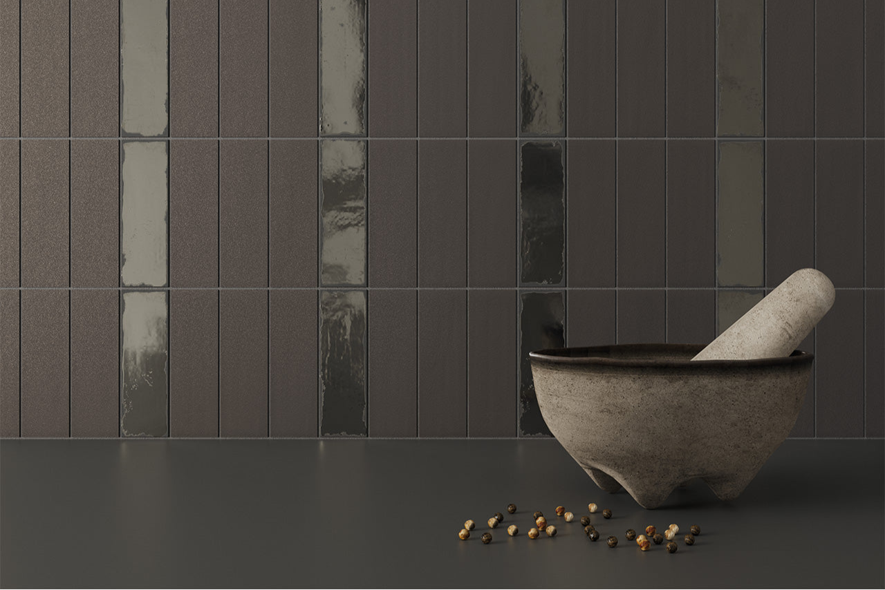 A tribute to the elegance and austere character of London’s historic architecture, this collection draws inspiration from the city’s timeless charm and industrial edge. The deep black of wrought iron and the rich shimmer of metallic tones—silver and gold—evoke the facades of iconic London buildings, blending classic sophistication with a bold, urban aesthetic. Featuring two formats, including slim, traditional tiles and dimensional bar reliefs, the collection offers design flexibility with a touch of drama.