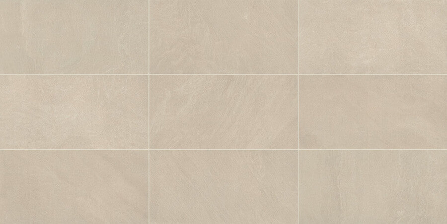 Monochromic shadings and texture resembling windswept dunes define the contemporary limestone vibe of MODERN OASIS. Rich, realistic graphic variations – linear to swirl – effortlessly flow from piece to piece in calming, organic shades. Dual-sized porcelain planks with flat surfaces, clean, straight edges, and a controlled, neutral palette juxtapose strikingly with bolder elements of wood, glass, and stone.