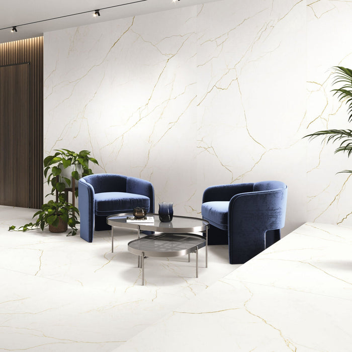 Our Quantum Collection features stunning white tiles with elegant gold veining. Suitable for both floors and walls, this collection includes decorative accents that will add a touch of luxury to your projects.