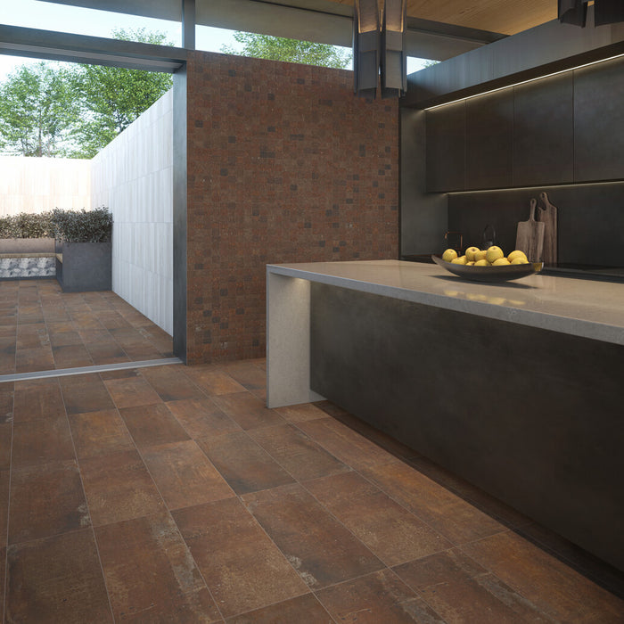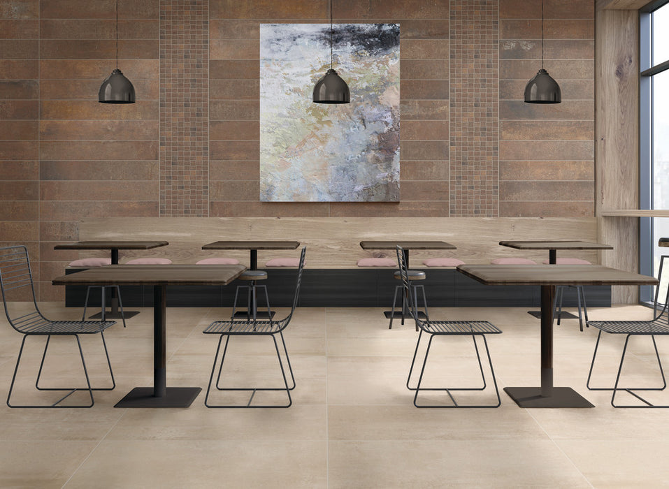 Union is an authentic interpretation of stained and worn concrete factory floors reminiscent of the industrial era. This bold combination creates depth and character in thoughtfully designed commercial and residential spaces. Superior slip resistance with StepWise technology and five tone-on-tone colors in large-format sizes with rectified edges delivers exceptional performance in contemporary style. Complete the design with its modern mosaic for the ultimate urban industrial look.